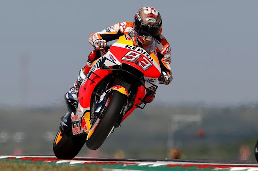 Balap ini akan digelar di Sirkuit. Dalam file foto yang diambil pada 3 November 2019 pembalap Spanyol Repsol Honda Team Marc Marquez kanan pembalap Italia.